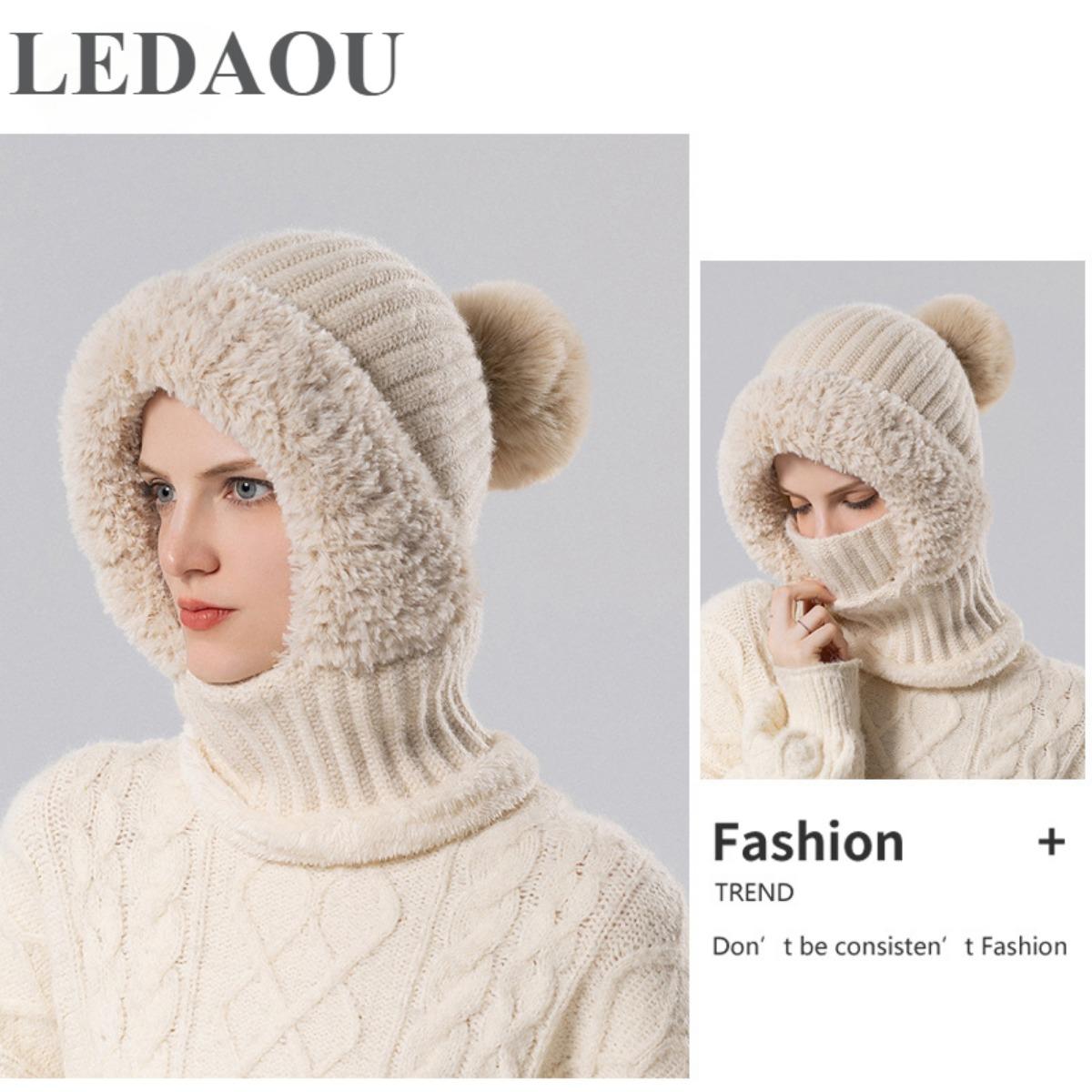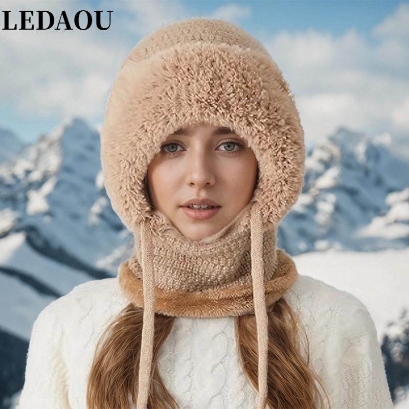 Women's Knitted Hat In Autumn And Winter, Cold Resistant Hat, Thickened With Fleece, Scarf Mask, One-piece Warm Hat, Outdoor Cycling Hat
